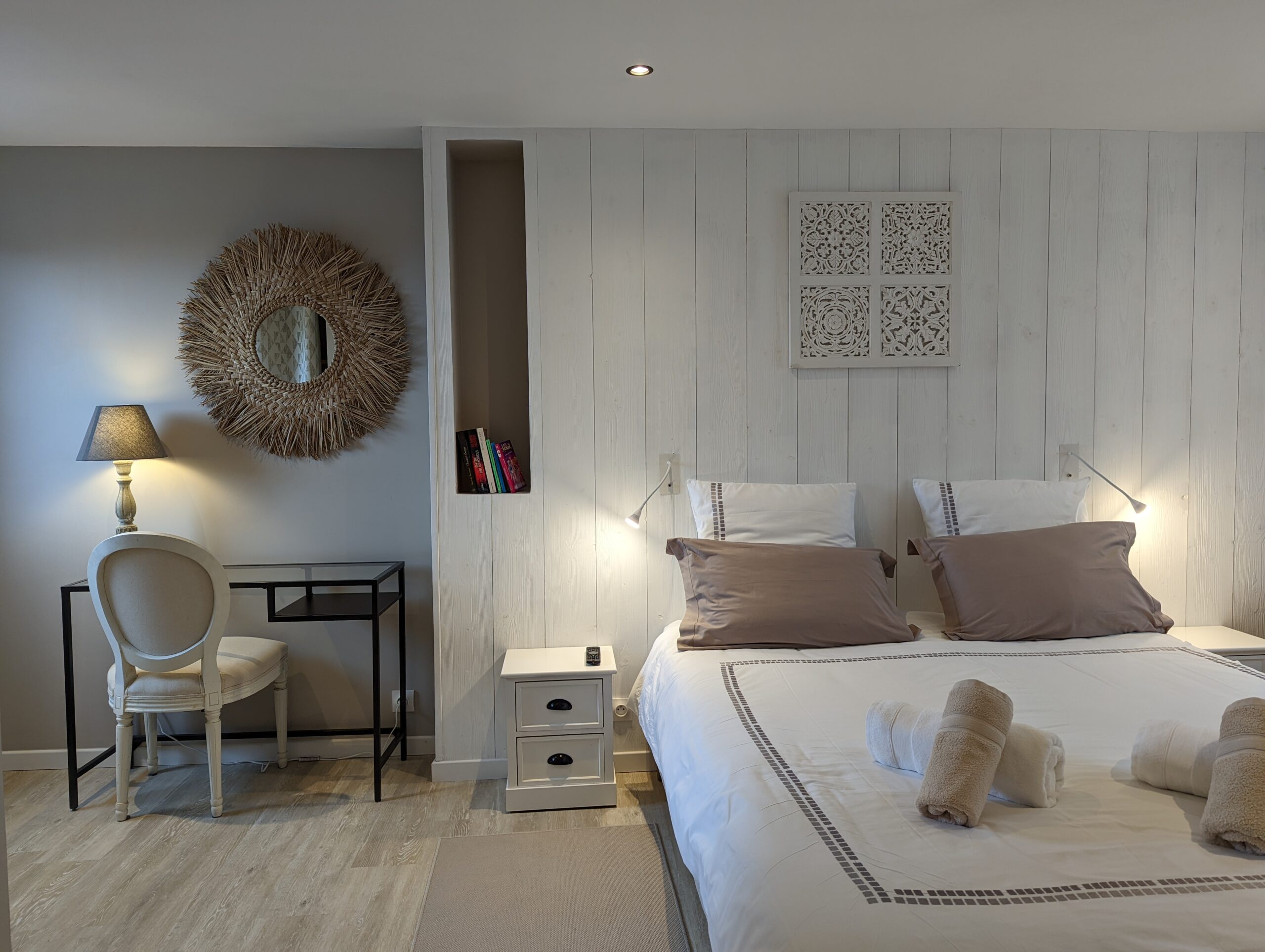 4 chambres sont à votre disposition et ajustables en fonction du nombre d’invités.