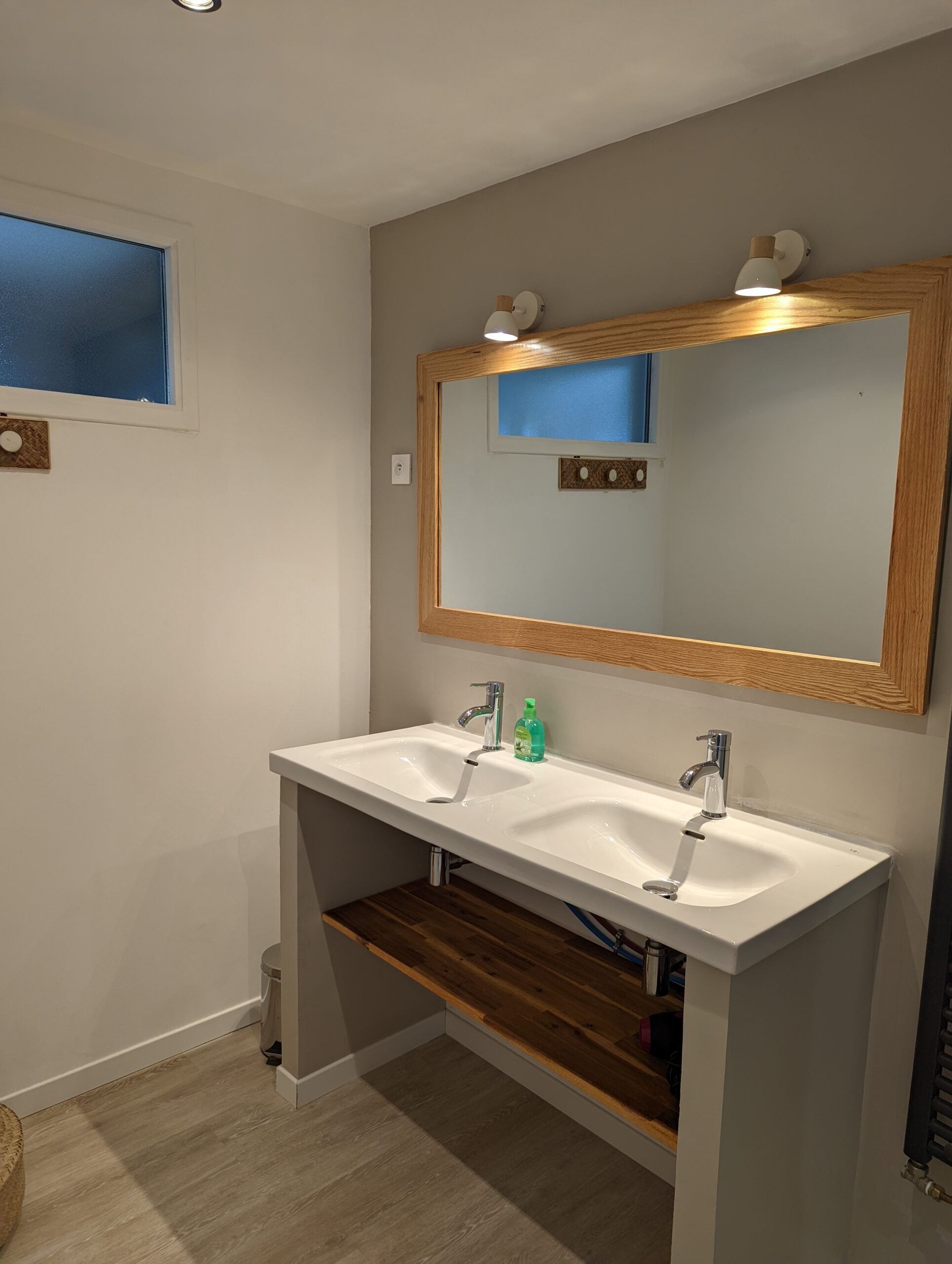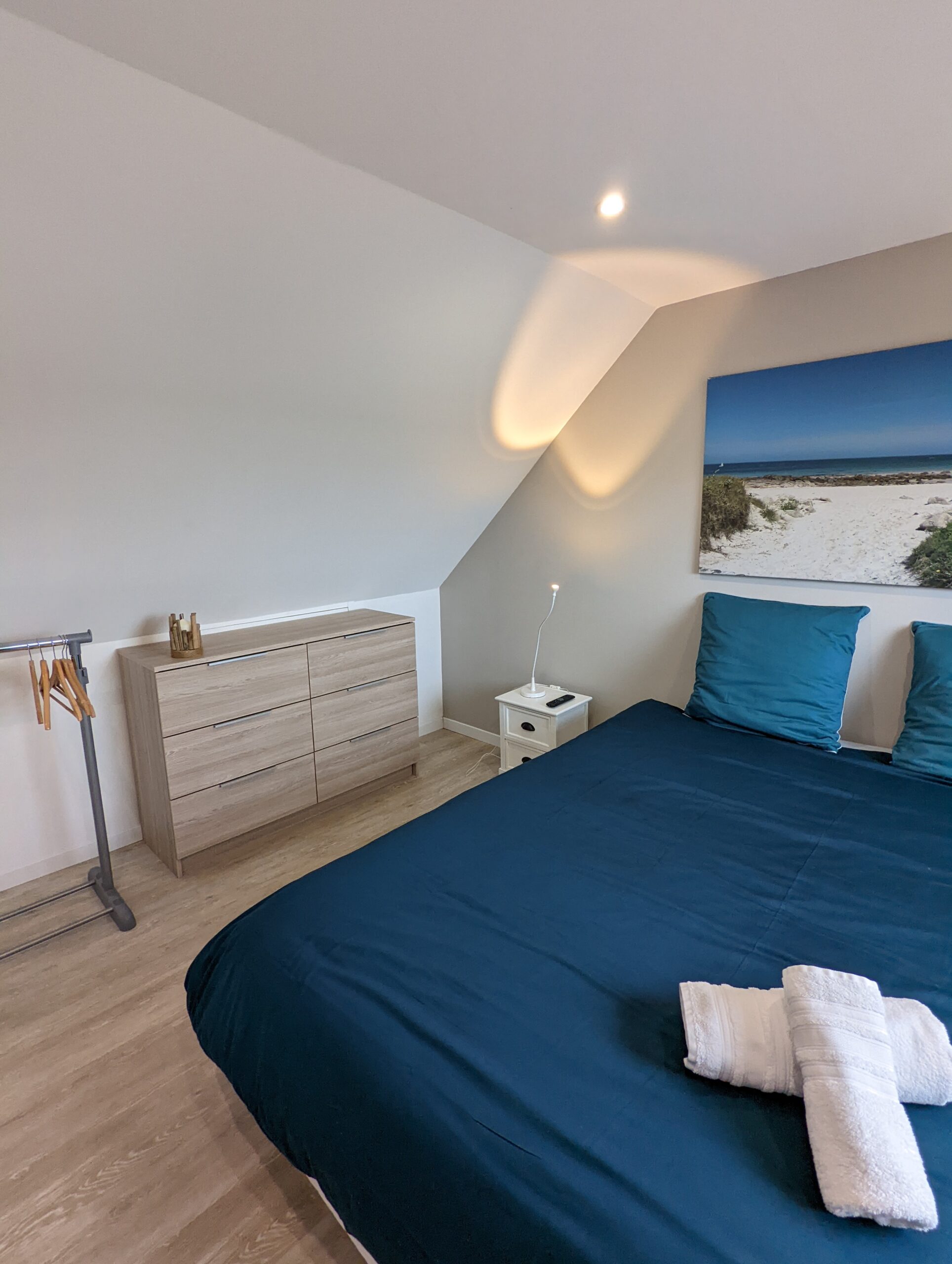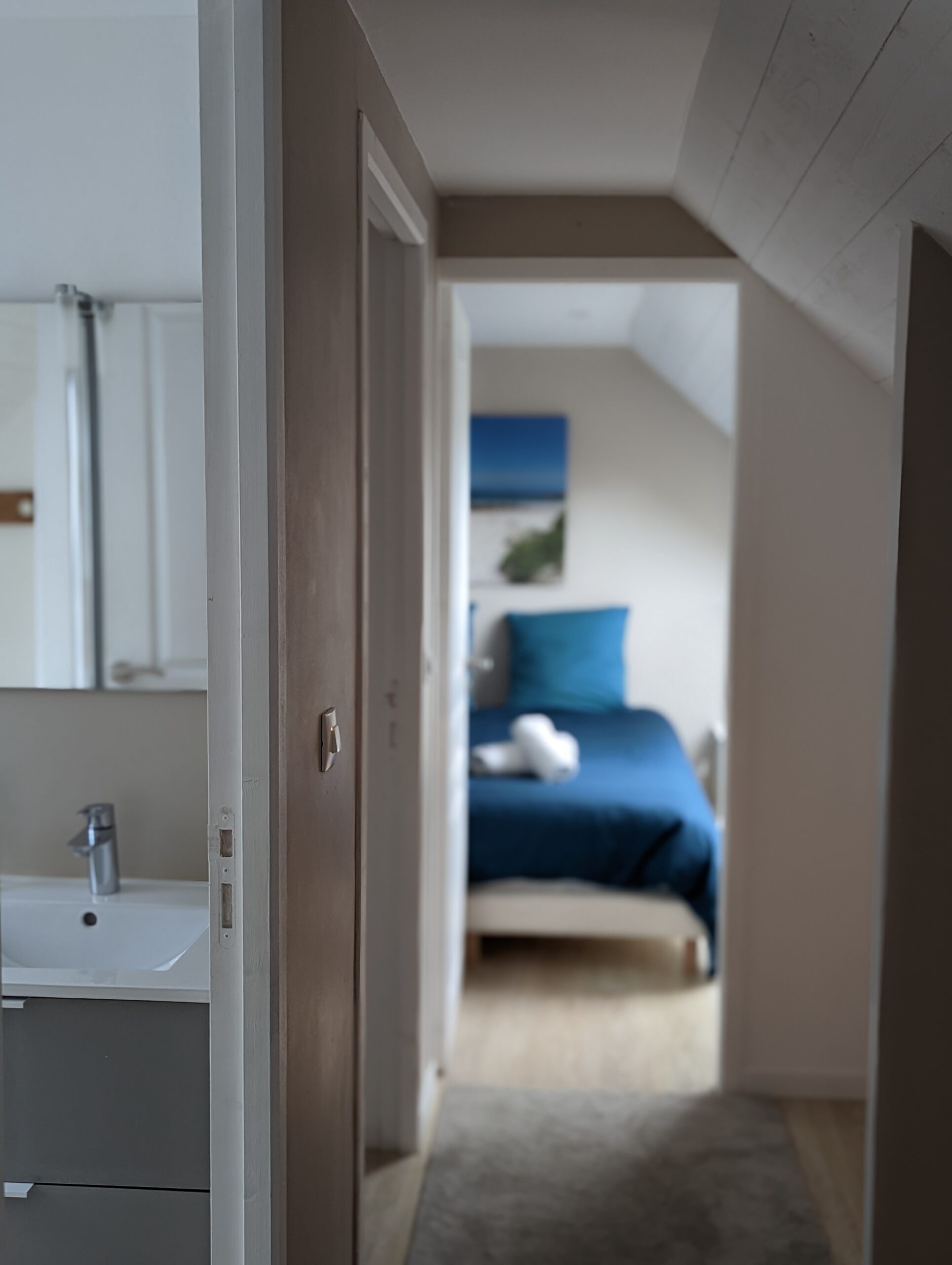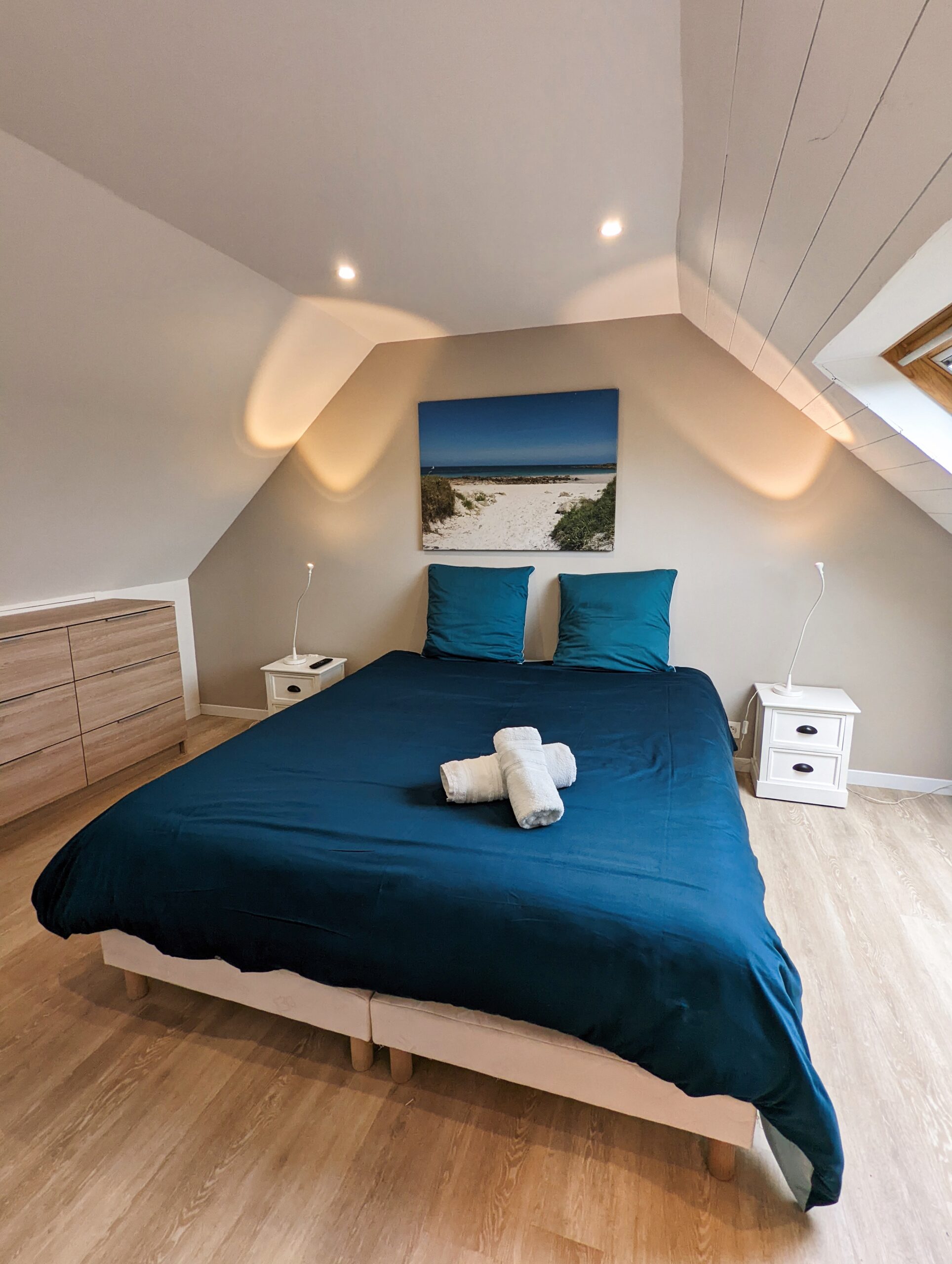 Au premier étage, vous retrouverez 1 chambre parentale avec baignoire+douche et une chambre double avec douche.