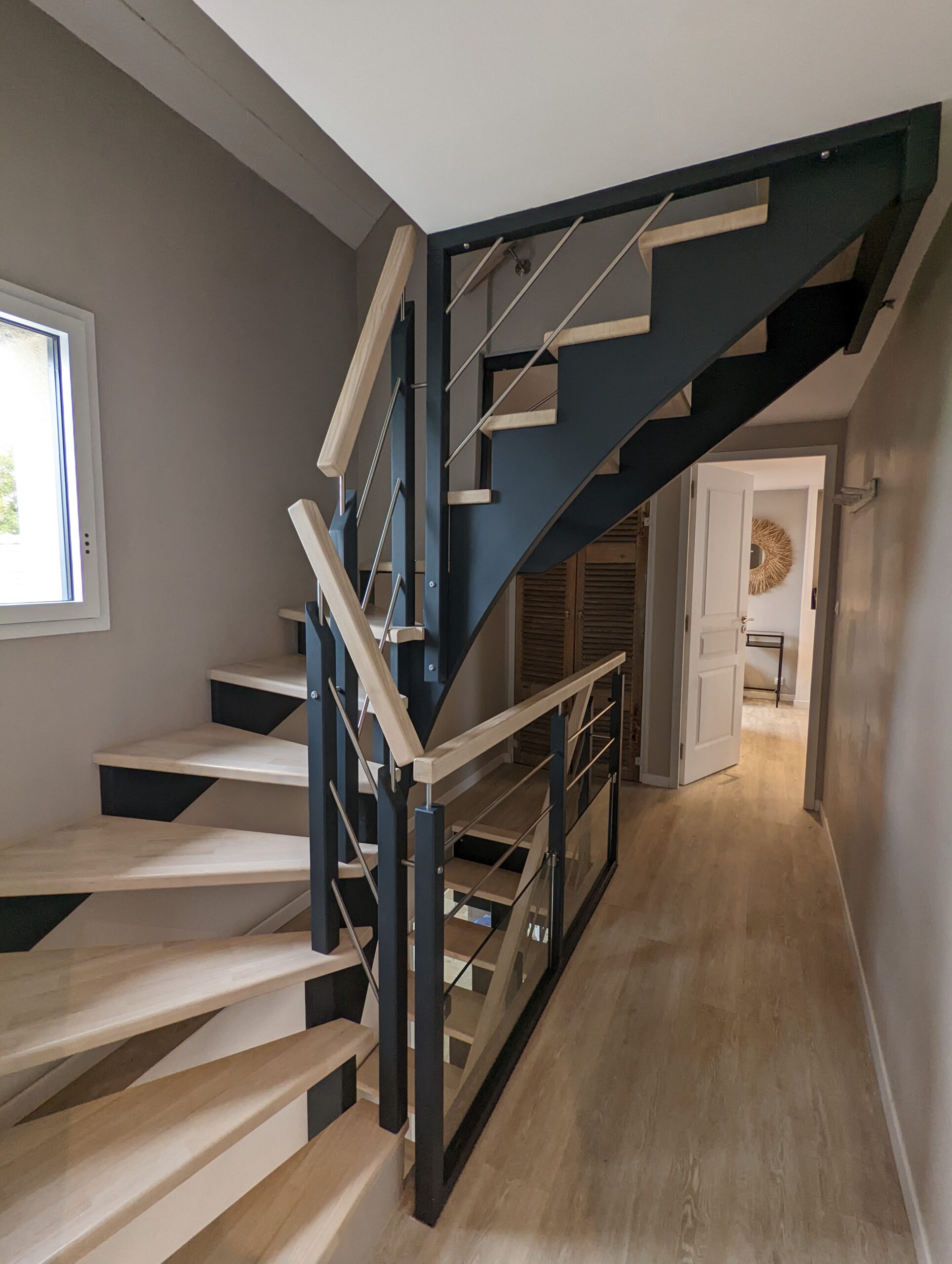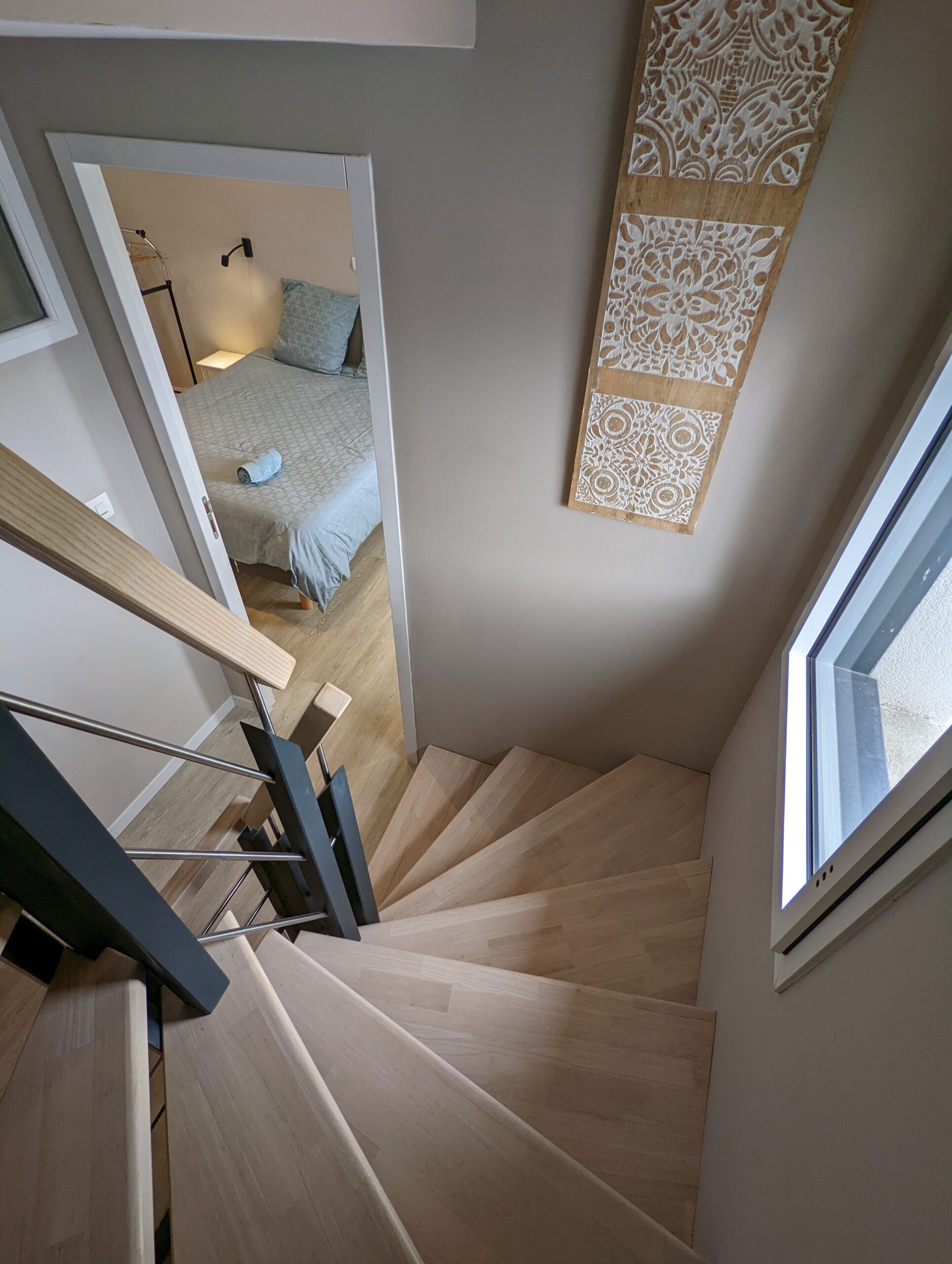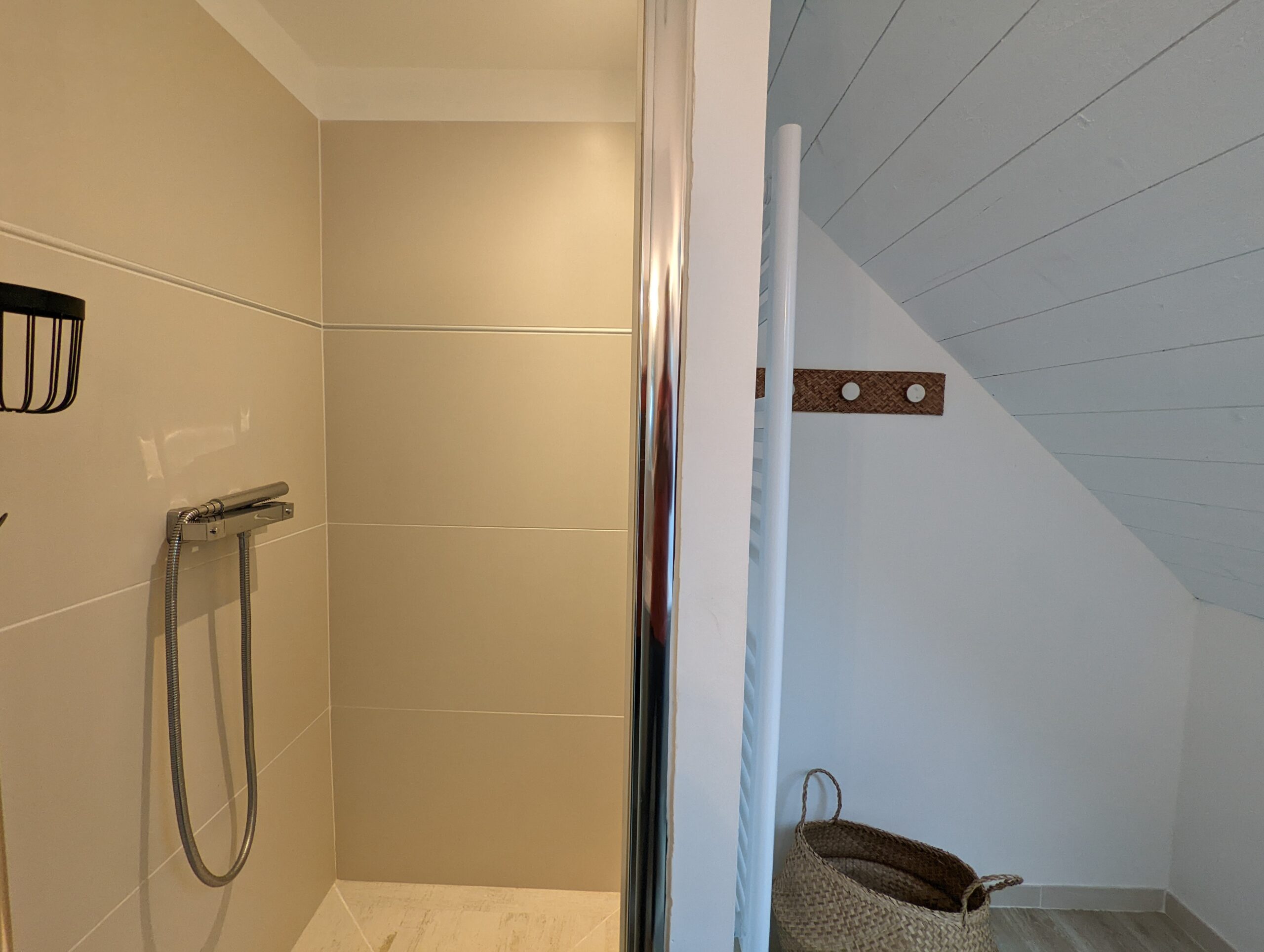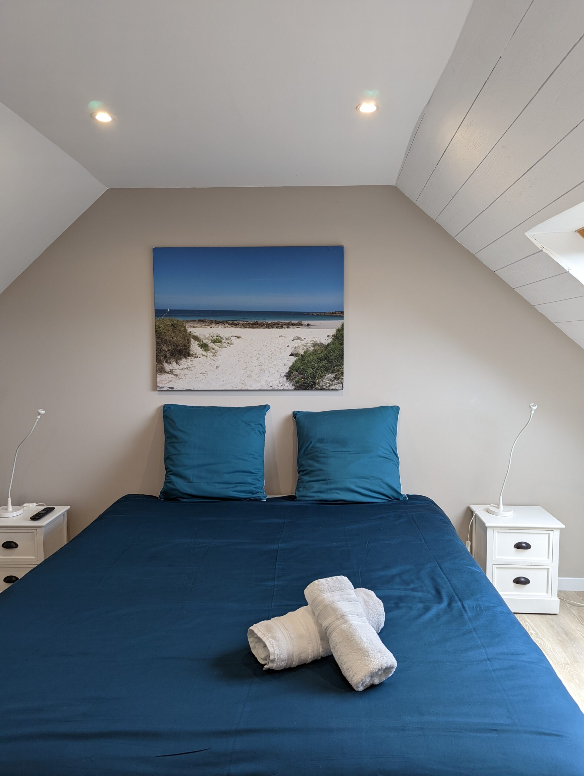 Au premier étage, vous retrouverez 1 chambre parentale avec baignoire+douche et une chambre double avec douche.